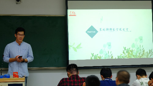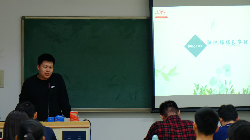 接着策划部部长宁进发言,他讲述了在党促工作收获的经验与情谊,其中他特别提起了定向越野活动。最后他希望大家认真投入工作,并期望每个人都能有所收获,有所成长。