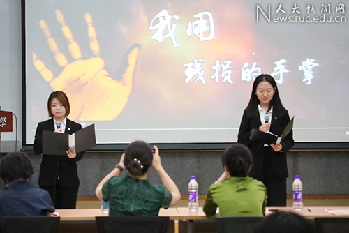 “我们用残碎的手掌,抚摸这沧桑的土地”,2020级硕士人口学班带来朗诵《我用残损的手掌》。