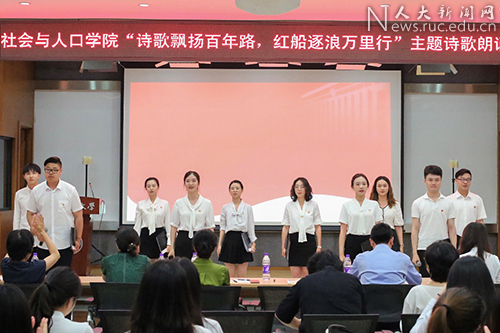 人口学博士党支部带来朗诵《百年芳华,逐梦而行》。