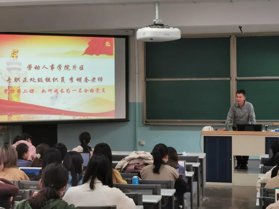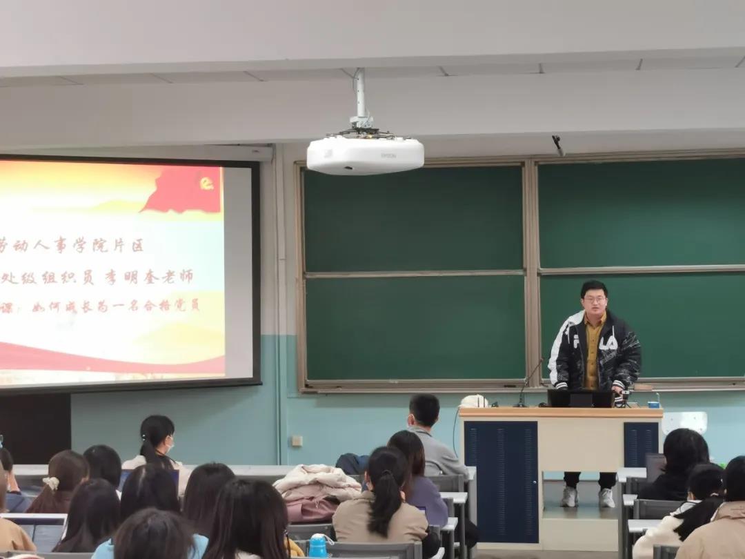 本次会议的主题是“如何成长为一名合格党员”,李明奎老师主要从思想、行动、组织和辩证关系四个方面阐述这一主题。在思想上需要认识党组织、认识自己,这要求同学们学习党史,明理、增信、崇德、力行;学习党章,清楚认识中国共产党是一个什么样的组织,端正入党动机;学习党规党纪,明白自己行为语言思想的界限;学习系列讲话,紧跟时代步伐。