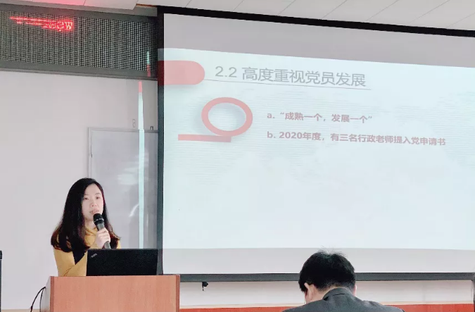 首先由行政党支部书记韩佳进行述职。她回顾了支部的各项活动,指出了现存问题并提出下一步的工作思路,包括切实加强理论学习与工作实践的有机结合、借鉴其他支部的优秀经验、丰富支部活动形式等。高燕燕书记评价行政党支部开展的活动都很有特色,在推进支部党建工作的同时,很好地增强了支部党员的凝聚力。