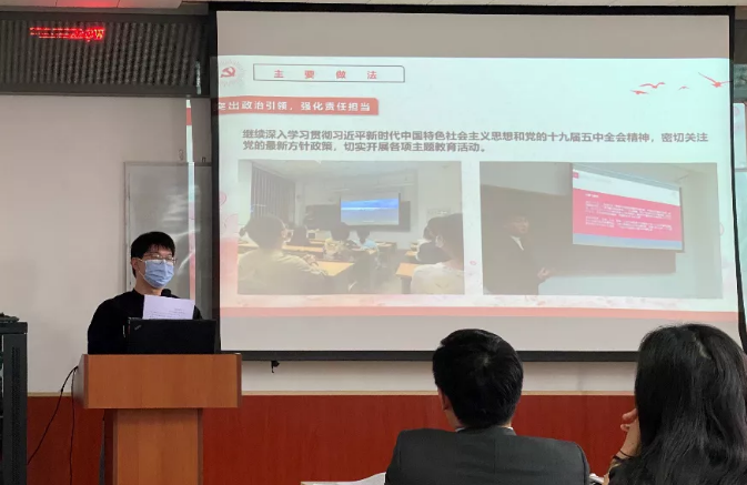第二位述职的是党支部书记朱斌。他首先介绍了支部一年来的主要工作,重点介绍了教师党员在疫情防控工作中通过多种方式发挥模范带头作用,随后针对支部存在的问题提出了解决方案,比如:加强工作系统性与稳定性、借建党一百周年契机加强党的理论和党史学习等解决思路。黄家亮老师肯定了该支部党建工作和医务工作相结合、理论学习和实践学习相结合、师生共建、线上线下相结合的特点,认为教工一党支部工作思路清晰,工作形式多元,支部建设效果良好。