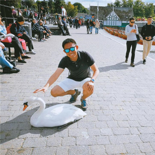 朱玄白的学习也不局限于书本和课堂。“读万卷书,行万里路。”从个人角度,想学习要参考他人,取其精华;从国家的角度,完成建设,要走出国门思考借鉴。每个假期,朱玄白都到世界各地游历,英国、德国、西班牙再到日本,亚欧大陆处处留下他的足迹。2017年暑假,朱玄白前往英国,赴英国华威大学经济公司和英国牛津大学彭布罗克公司参加交流项目。“我们是未来国家的中流砥柱。要想了解一个国家未来发展的走向,不仅要通过它的经济、政治等方面进行俯瞰,还要与同龄人交流,从人道主义角度去微观了解。”朱玄白在英国期间,与全国各地及世界各地的同学们相互交流,共同完成了各种project,从聊天中了解各国当下的发展状况。“现代资讯的极大丰富带来了试听的混淆,网络上对国际形势有很多或唱衰或叫好的论点,但我们在面对这些资讯时,亦要保持自己清醒的头脑,要有自己独立的理性思考。学习不能只是靠耳朵来听,还需靠眼与脚,去观察、去游历,这样才能真正掌握自主学习的品格,才能将学习与生活结合起来。”在英国访学归来后,朱玄白轻描淡写地留下一句对祖国的评论:“复兴之路是艰辛的,苦难辉煌是伟大的。”