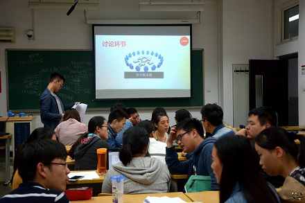 在嘉宾分享环节,王源首先就有关选题、实践方法等方面进行了介绍;其后,经柏松对定量研究和定性研究两种研究方法进行了具体地阐释;最后,陈杭分享了关于如何写项目申报书的经验。他们纷纷以自己团队申报“大创”的过程为例,就申请中的许多细节问题给出了自己的建议,内容丰富翔实。台下汇集着2014、2015级有意愿参加“老员工创新实验计划”的同学,他们一边认真记录经验,一边积极提出疑问,整个分享会气氛活跃。