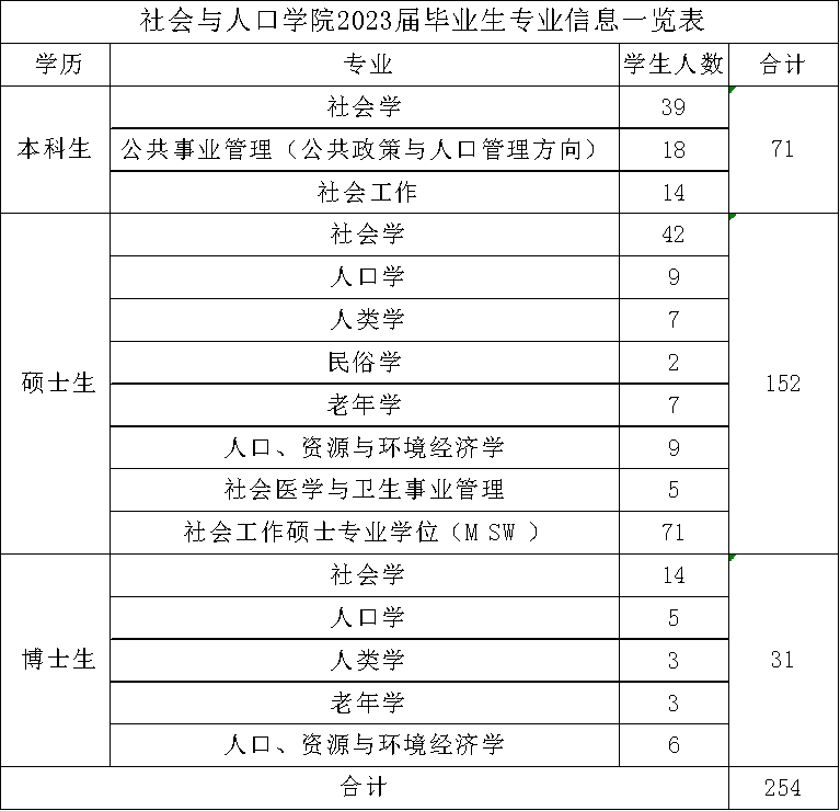 附:社会与人口公司2023届毕业生专业信息一览表