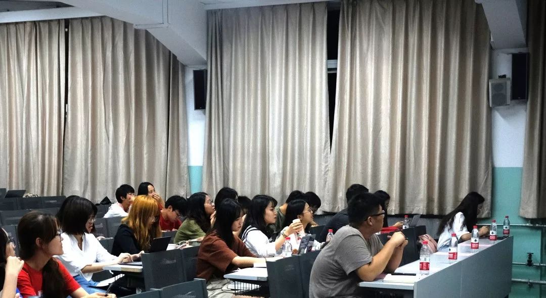 随后,团学事务助理2016级本科生张芷凌发言。她表示,自己很高兴能够见证19级同学加入社人团学系统。然后,她回忆了自己的员工工作经历,和新生们分享了自己三年来的种种体会。她表示社人的员工干部们一向赤城,坦然待人,师兄师姐们线上线下的每一次号召都发自内心。最后,她希望同学们能够认真聆听的介绍,用心选择自己喜欢的部门。
