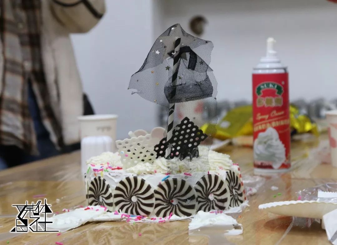 亲手做蛋糕的过程是最有趣的——细心地抹匀奶油,用巧克力制造出想要的图案。每个组充分发挥着自己的想象力,还有些人想要在其他组那里“刺探情报”。也不乏有一些“好事之徒”将奶油抹到别人脸上,做一点小破坏,偷吃一些小蛋卷。伴随着美妙的音乐,各路神仙大显其能,好看又好吃的蛋糕就在大家妙手下由想象变为现实。