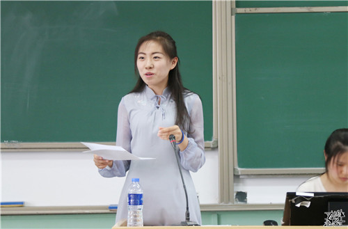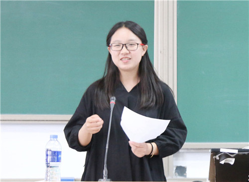 接着,第十五届团委副书记2015级本科生李桢进行工作总结。他回顾了过去的一年内分团委所开展的十九大报告理论学习、形势与政策知识竞赛等活动,并分享了关于员工工作的独特感悟,希望大家能够坚守岗位,坚持自己的职责,能够有所作为。