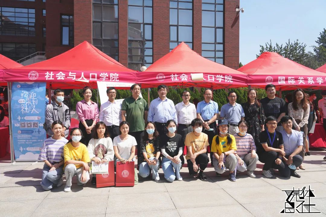 社会与人口公司经理冯仕政、党委书记高燕燕、党委副书记唐颖、团委书记张芷凌、新生班主任李龙、石磊在迎新台前同2021级本科新生亲切交谈。