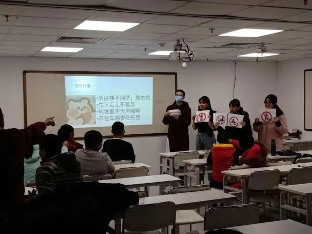 在第三节关于校园礼仪的课上,我们开展了更多的互动环节,同学们热情高涨,踊跃参与到了活动当中。