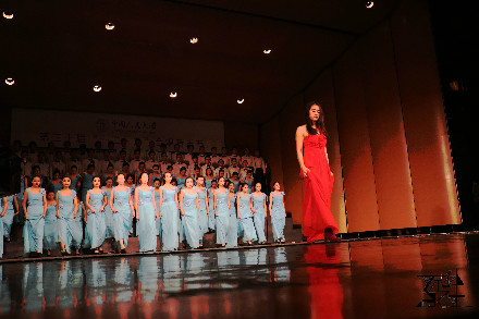 悠扬的钢琴声缓缓响起,坚定有力、悠扬大气的旋律喷薄而出。“你卷走黑暗迎来晨曦,火红的心把我们集合在一起”,男生们的雄浑之声将《迎风飘扬的旗》放飞,“你抖落尘埃越过风雨,执着的心让我们改变了自己”,女生婉转动听的和声展现社人学子青春昂扬的魅力。“迎风飘扬的旗,我们跟着你,跟着你就是跟着希望,坚定不移”,铿锵有力的节奏和着积极澎拜的热情,社人之声响彻如论。