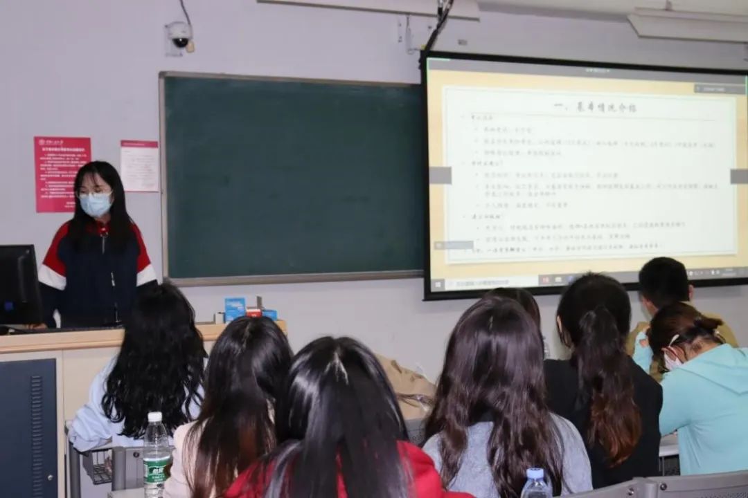 孙天瑶师姐以“山东专额定向选调分享”为主题,首先对选调岗位进行时间线的梳理和岗位选择的介绍,她结合报名人数的数据清晰的展现了选调生报考的竞争难度和校际优势。其次师姐结合自己的备考经历,对公共基础知识和面谈流程分别进行资源分享和时间分配的展示说明,她强调备考过程中要重视细节,同时更要自信真诚地展现自我。最后师姐对岗位抉择和心态调整给出了自己的建议,她强调要充分考虑岗位限制,在对城市和工作的适应等因素的参考下,做出自己最优的选择。在分享结尾,师姐也给同学们给予了“广阔天地,大有作为”的祝福和鼓励。
