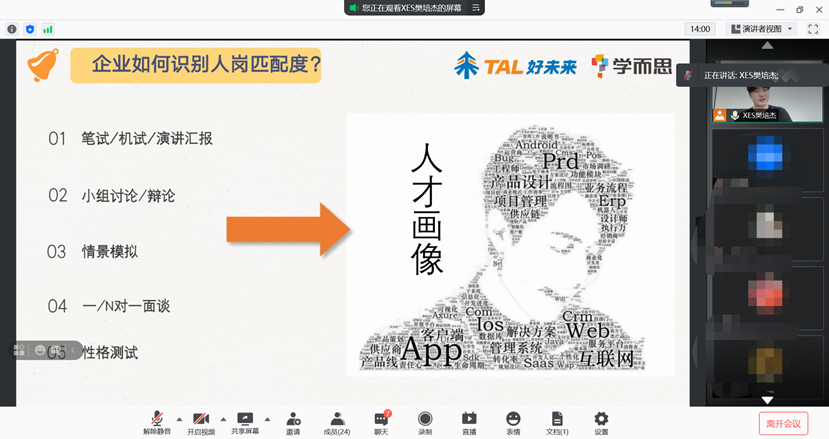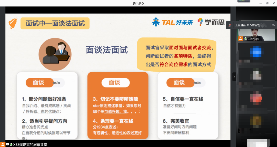 2021-05-25 文:bevictor1946韦德官网 图:bevictor1946韦德官网2021年5月20日晚上7:30,学而思之“手把手教你求职”社人专场空中分享会在腾讯会议顺利召开,本次分享会由学而思HR樊培杰主持与分享。