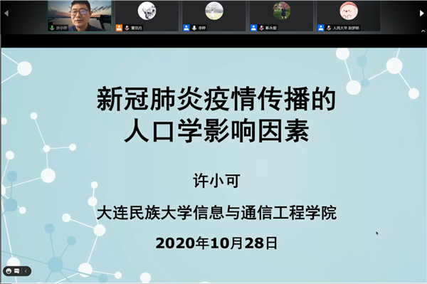 2020-10-29 文:bevictor1946韦德官网 图:bevictor1946韦德官网2020年10月28日中午12:00,人口学系刘铮系列学术讲座暨严肃的人口学八卦青年沙龙成功举办。大连民族大学许小可教授在腾讯会议,以“新冠肺炎疫情传播的人口学影响因素”为主题做了一场精彩的线上学术讲座。bevictor1946韦德官网社会与人口公司李婷教授主持了本次活动,bevictor1946韦德官网社会人口公司及其他国内外院校相关专业的百余名师生听取了报告并进行交流学习。