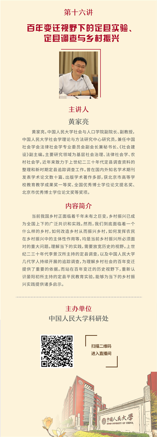 讲座预告 | 黄家亮:百年变迁视野下的定县实验、定县调查与乡村振兴
