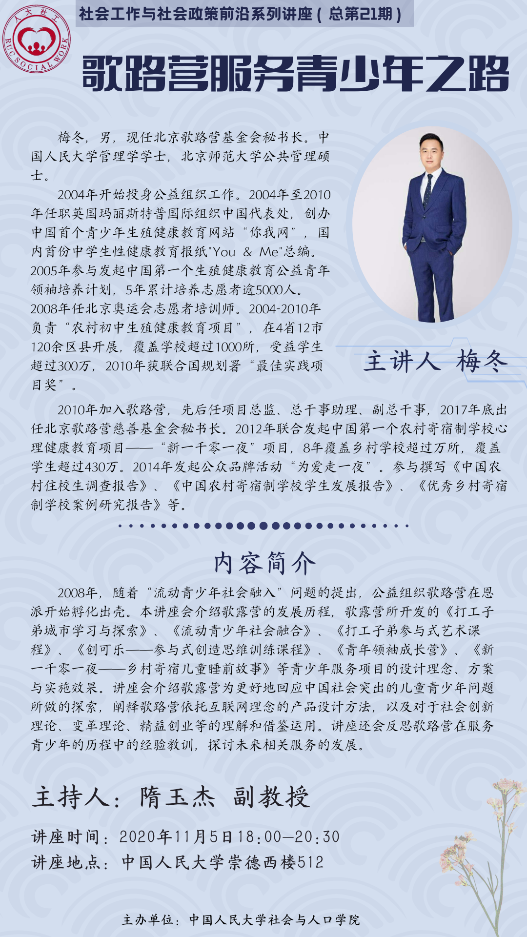 讲座预告 | 梅冬:歌路营服务青少年之路