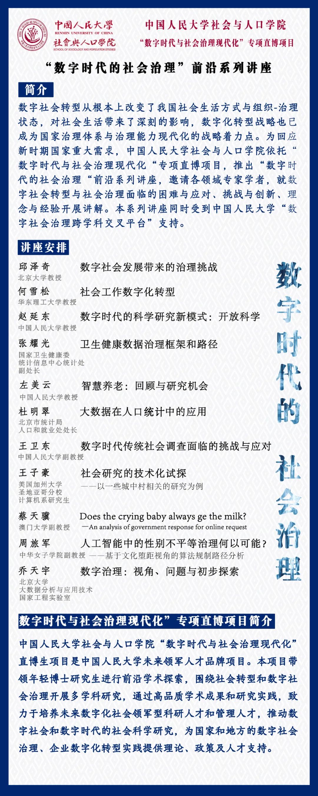 社会与人口公司隆重推出“数字时代的社会治理”前沿系列讲座
