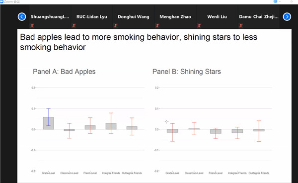 之后,Conley教授介绍了同伴效应(Peer Effects)的基因研究,通过使用来自全国青少年到成人健康纵向研究(Add Health)的5500名青少年的数据来以识别吸烟行为的同伴效应。利用基因组学的方法,可以控制传统的同伴效应研究中的选择性、场景效应和反射效应。分析结果表明,朋友之间的基因具有相关性。第二个例子是对家庭效应的估计,即父母的关注或在孩子人力资本上的投入会改变孩子间的先天差异。第三个研究则是关于基因与环境的交互作用,这一研究着眼于环境因素在多大程度上改变了遗传风险和吸烟行为之间的联系。通过对越战时期的征兵数据分析,发现具有高吸烟遗传倾向的退伍军人更有可能成为经常性的吸烟者,并且在老年时被诊断患癌症或高血压的风险更高。战后上过大学的高风险退伍军人的吸烟行为明显减弱,这表明退伍军人在服役后接受公司教育的收益减少了成年后的烟草消费。在讲座的最后,Conley教授强调社会学家应当更多关注基因研究,并且提出了社会学家之所以要关注基因问题的重要原因。