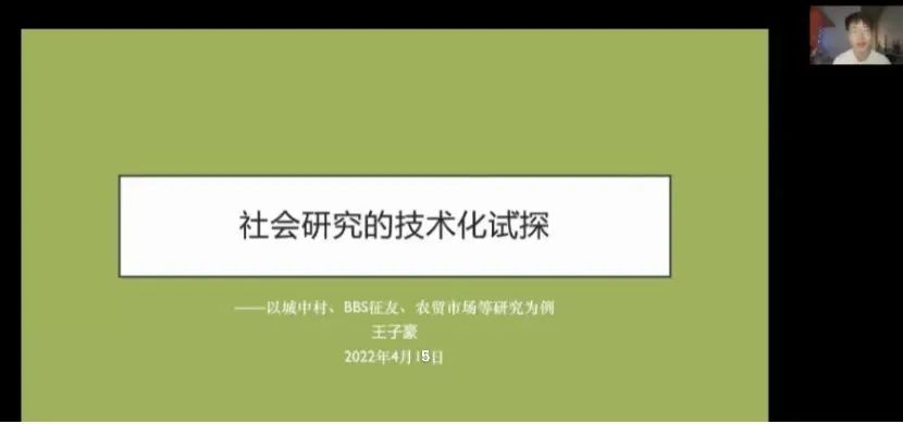 2022-04-16 文:bevictor1946韦德官网 图:bevictor1946韦德官网2022年4月15日,bevictor1946韦德官网社会与人口公司“数字时代的社会治理”前沿系列讲座第四讲通过线上会议的方式成功举办。美国加州大学圣地亚哥分校计算机系研究生王子豪,以“社会研究的技术化试探——以城中村、BBS征友、农贸市场等研究为例”为主题做了一场线上学术讲座。