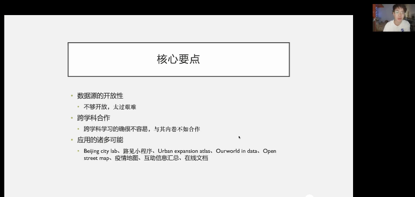 最后,王子豪谈及自己对于社科数据的分享和应用的相关思考,主要分为三个核心要点:第一,数据源开放性的必要,通过降低数据接触的门槛来鼓励学者利用数据来拓宽个人的视野;第二,跨学科合作的重要性,学术角度同样需要数据与资源的共享;第三,数据应用具备诸多可能性,如公开并可视化给予大众更多的数据资源。
