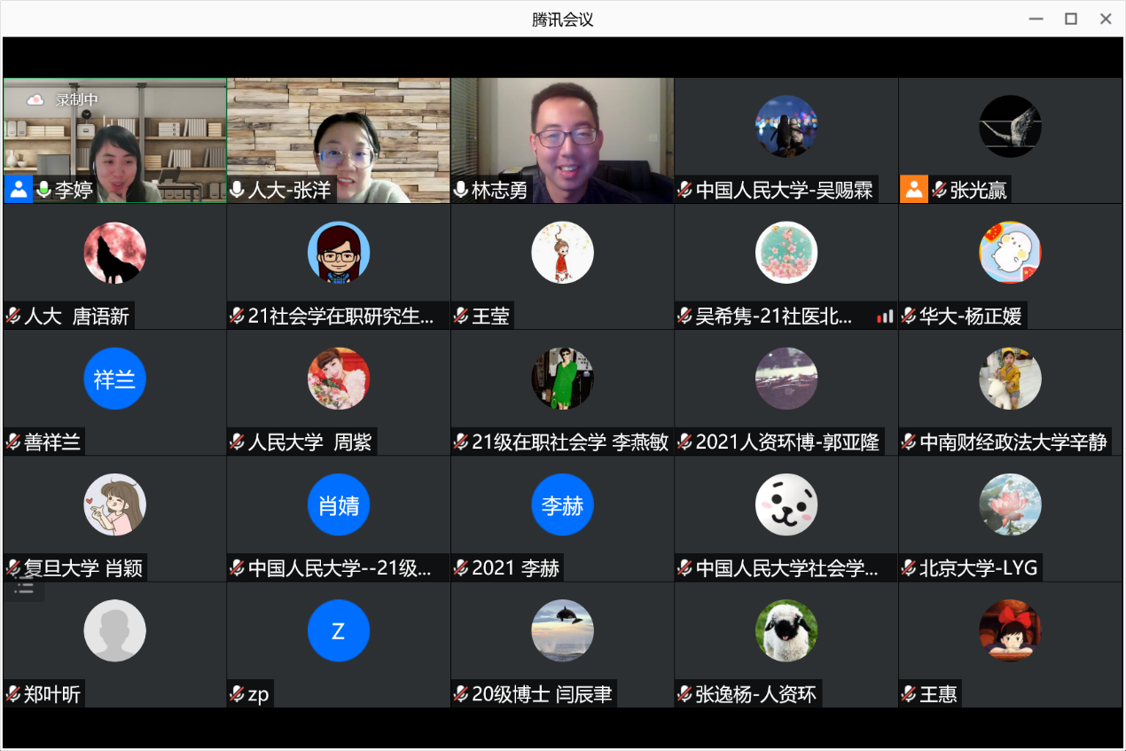 最后林博士总结现在不应该只关注应该由哪个单一的主体来负责照护老人,而应该思考如何让政府、社区、家庭以及老年人自身共同合作提供更好的照护服务。讲座分享结束后,参会的老师和同学踊跃提问,就“如何衡量照顾者之间的合作情况”、“家庭照护提供者的重要性和照护压力”、“如何看待家庭养老与专业化养老之间的关系”、“如何理解美国的家庭养老”、“美国家庭养老支持政策”和“如何测量老年人的未满足的照护需求”等问题与林博士进行了热烈而富有成效的探讨。