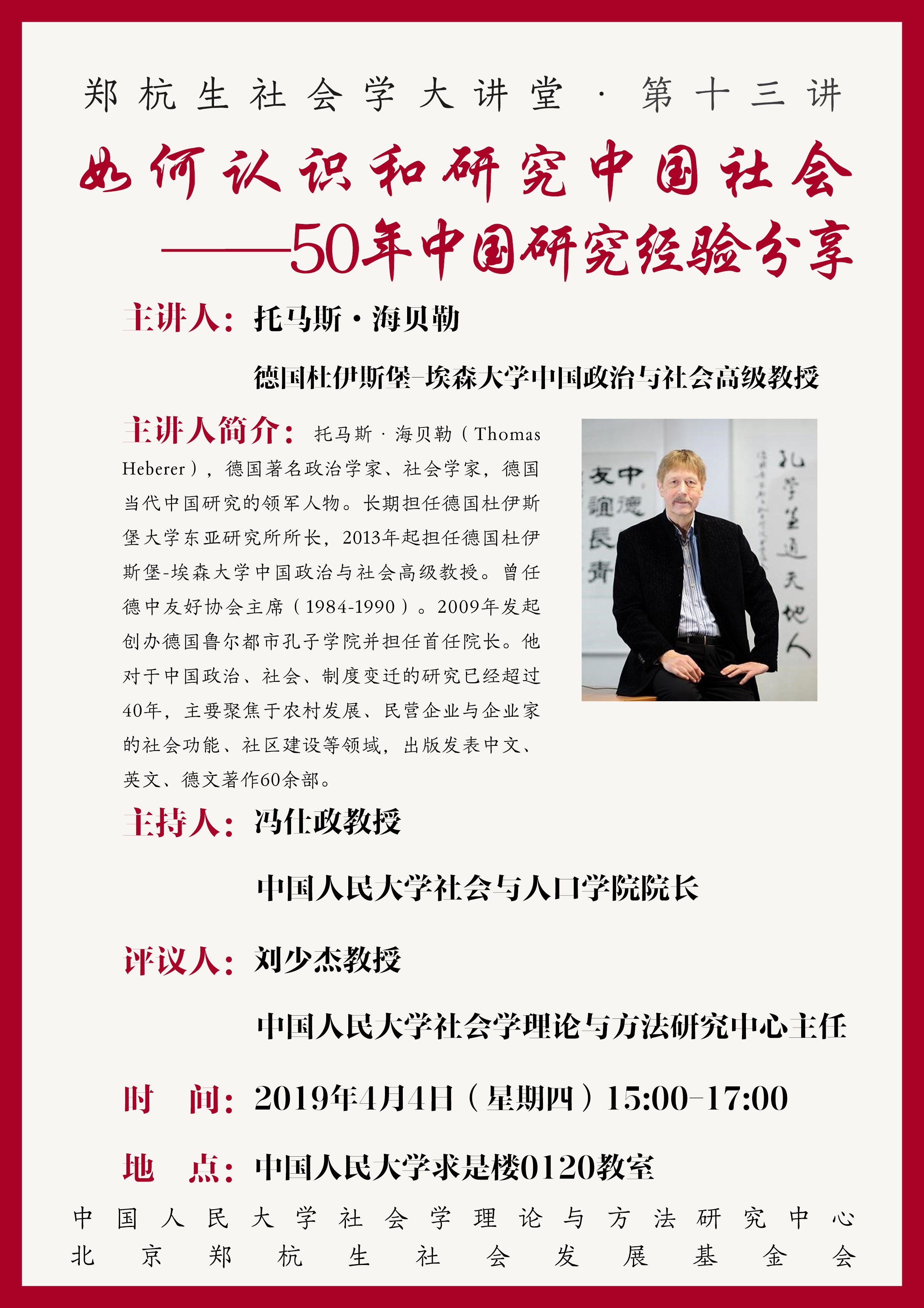 【郑杭生社会学大讲堂】第十三讲·如何认识和研究中国社会——50年中国研究经验分享