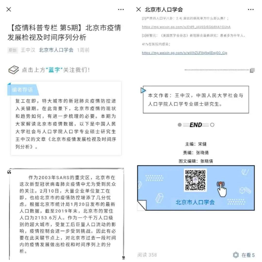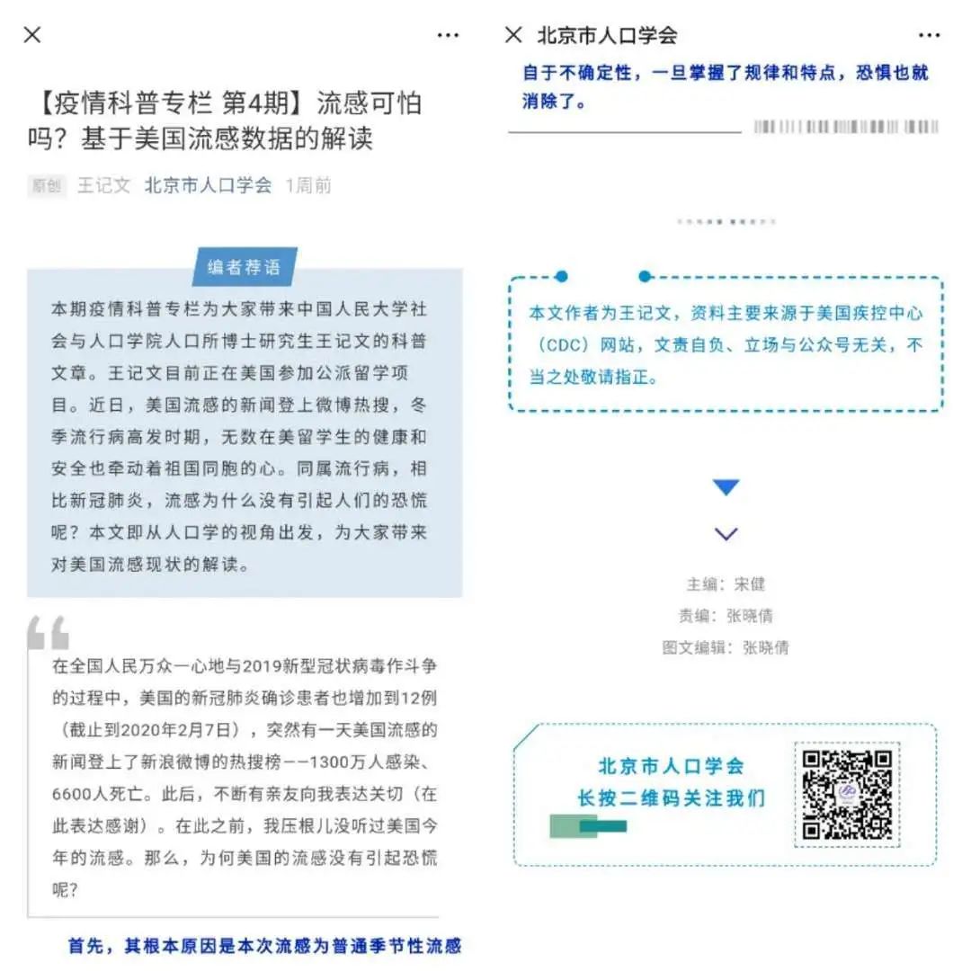 bevictor1946韦德官网人口与发展研究中心副主任、中国人口学会副秘书长、北京市人口学会副会长兼秘书长宋健教授,在疫情发生以来,积极指导研究生根据权威部门发布的数据,进行疫情相关分析,撰写系列科普文章,并组织了系列稿件发布在北京人口学会微信公众号中,在培养员工学术能力和社会责任感的同时,充分发挥高校教师的社会服务功能,引领学术团体研究真问题,将防疫课堂作为育人课堂,将育人理念贯穿始终,为社会服务,为人民服务。