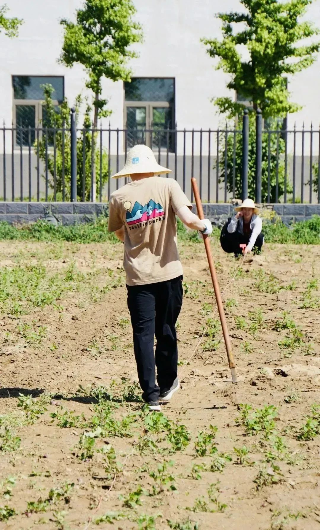 上午,同学们亲身体验了黄豆和玉米的种植,用脚步丈量田野垄头,用锄头和犁耙感受泥土的坚实触感,捧起种子和肥料洒进土沟,也是将汗水、希望和美好的记忆一同播在广阔的田野上。