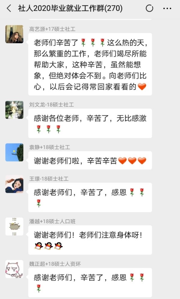一个又一个行李打包的专属小群,一轮又一轮挥洒汗水的现场直播,一次又一次贴心的问候,真正实现了行李打包工作中的“一人一策”。毕业生们虽身处天南海北,但小小的镜头实现了他们与母校的云端相聚,尽力帮助他们圆满这特殊的毕业季的遗憾。毕业生们表示在云端相聚的短暂时光里,老师们都耐心细致、认真负责地为他们打包行李,镜头对面老师们反复确认、仔细寻觅物品的小细节也让他们倍感贴心。