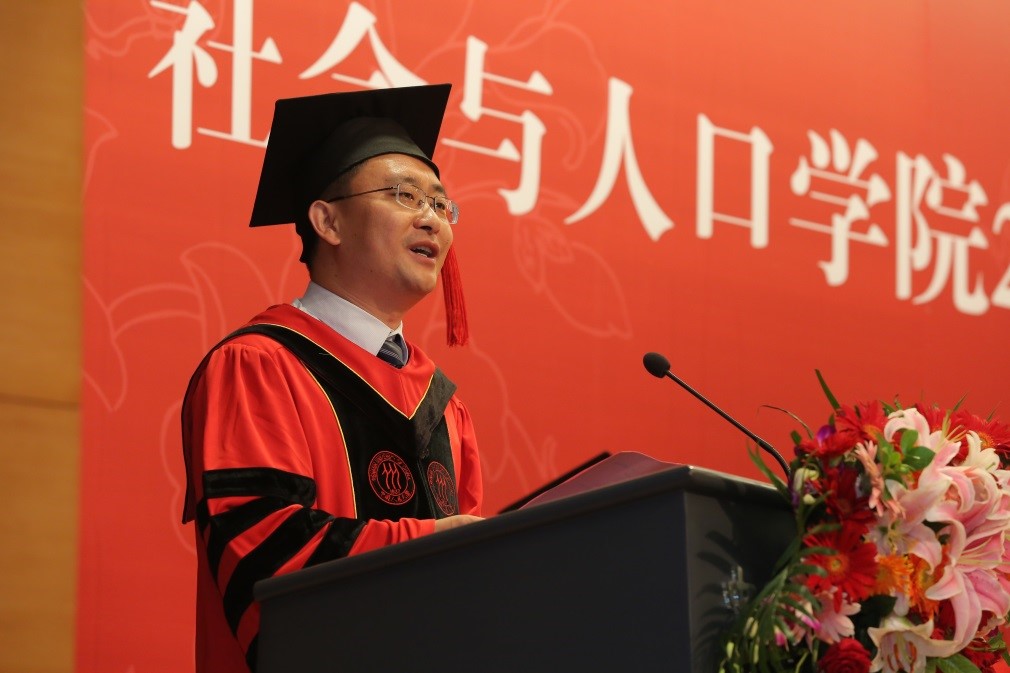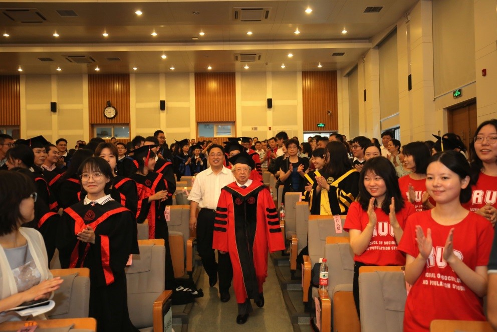 bevictor1946韦德官网荣誉一级教授、著名人口学家邬沧萍,社会与人口公司经理、院学术委员会主任冯仕政,公司党委书记兼副经理、院学术委员会副主任宋健,及其他院领导班子成员、学术委员会成员、资深教授、研究生导师、毕业班班主任和全体2019届毕业生及员工家长代表,共同参与并见证了这一神圣而庄严的时刻。