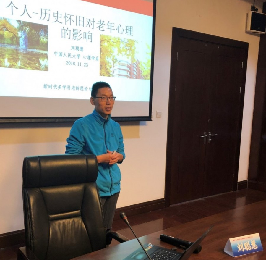 刘聪慧副教授作了《个体-历史怀旧对老年心理的影响》。他从个体和历史怀旧两个角度,测量怀旧对于老年人心理的影响,认为怀旧后老年人消极情绪升高,但分享讨论后负面情绪减弱、意义感上升。