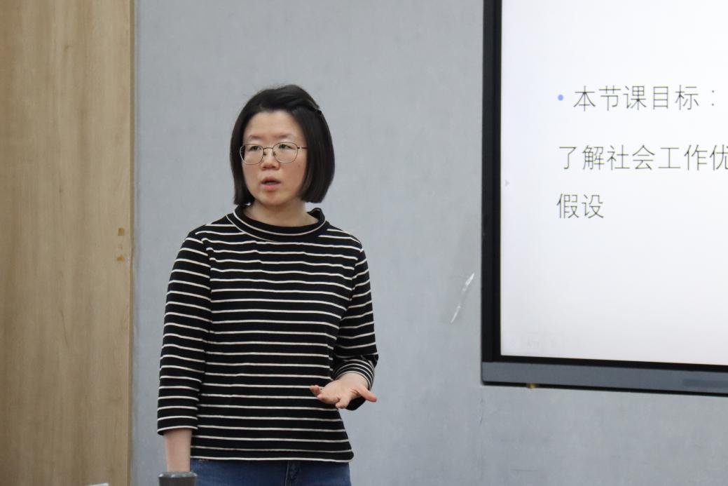 王子彧的讲授主题为“社会工作价值与干预:优势视角”。她由围绕核心概念、历史起源、基本假设、定义等方面深入浅出地讲授了优势视角的重要知识点,并用与其相对立的问题视角进行对照解读。在讲授过程中加入小组讨论环节,激发员工通过思维碰撞加深理解。课程的最后,回顾了本节课的内容并留下延伸问题启发思考。