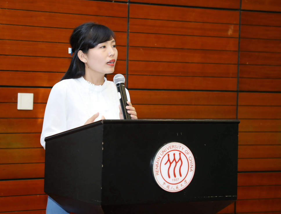 参赛队伍教师代表、南开大学周恩来政府管理公司团委书记杨晓颖老师发言。首先,她对本次比赛的圆满举办表示祝贺,对社会与人口公司的工作人员表示感谢。她提到,从第一次京津地区比赛到第十一届比赛,南开大学从未缺席任何一次比赛。知识竞赛的举办为广大社会学学子一同交流切磋提供了一次宝贵的机会,也为各个高校之间搭起了一座交流的桥梁。她表示,希望同学们以此次活动为契机,在新的起点做出社会学人新的贡献。