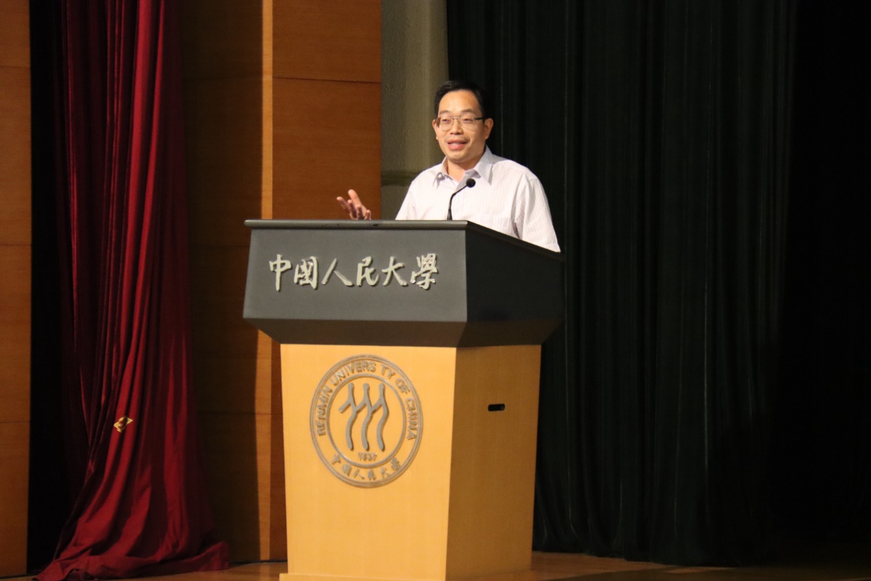 之后,国家一级教授翟振武为新生们讲授开学第一课。他对同学们提出了三个方面的希望:一是要保持高度的自觉自律,要珍惜大学时光,时刻保持勤奋、紧张、进取的状态,不断取得新的进步;二是要坚持“读万卷书,行万里路”,在大量阅读的基础上不断完善自己的知识体系,不断提升自己的专业能力;三是要“博览百类书籍,培养国际视野”,要善于利用人大这所综合性大学的优势和资源,多开展跨专业、跨学科、跨文化学习,努力成长为适应时代需要的宽口径、厚基础、跨学科复合型人才。