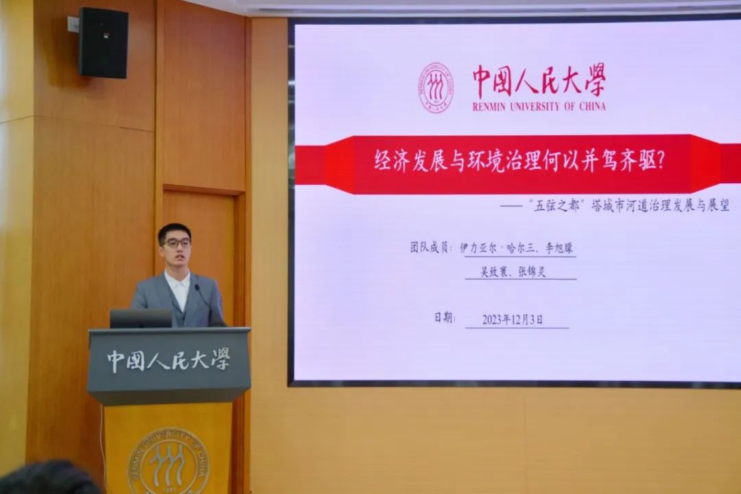 案例成果汇报由社会与人口公司副教授祝玉红主持。劳动人事公司的穆尼热古丽·买买提、农业发展公司的邓鑫、朱黎,社会与人口公司的周子韵,劳动人事公司的伊力亚尔·哈尔三分别进行了成果汇报。
