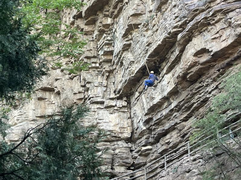 参观红旗渠总干渠的咽喉工程青年洞的过程中,学员们通沿渠重走“水长城”,观看“凌空除险”现场模拟,在巍峨险峻的太行山脚下真实感受到了“人工天河”的雄伟壮观。看着巨石崖壁上镌刻的历史痕迹,了解十年修渠的不畏艰辛,林县人民敢于战天斗地的英雄气概让每位学员发自内心地感到钦佩与震撼。