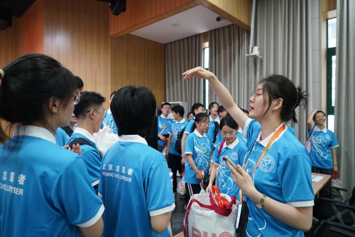此外,面对北京会议中心的岗位安排调整,带队老师庄溪瑞带领5名志愿者灵活补足岗位空缺。“每次演练和正式活动的岗位都不太一样,需要志愿者随时‘顶上’,但是我们的同学适应能力非常强,应对变化沉着冷静、信心十足”,2024级社会工作硕士生刘竞聪表示,“不过在庄老师和北会工作人员的指导帮助下,我们很快适应了新岗位,并顺利完成了服务保障工作”。