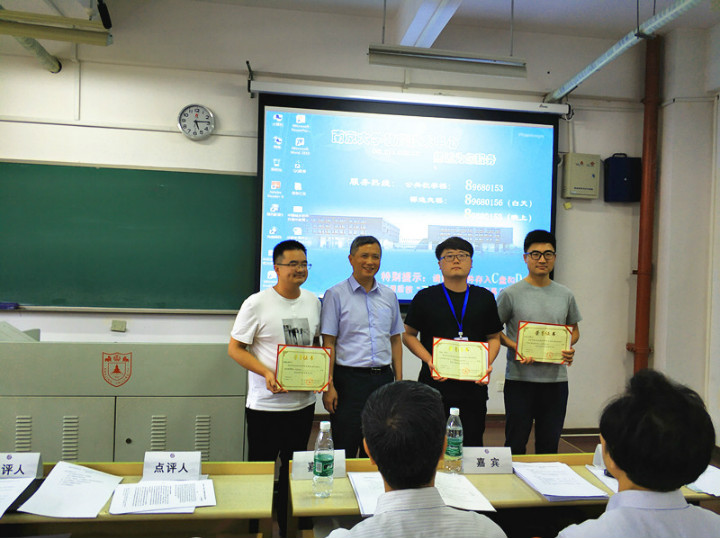 周飞舟、黄家亮、严飞为二等奖获得者颁奖