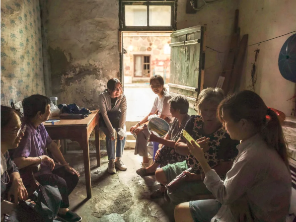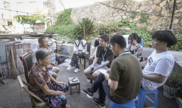 同学们还在田野的偶遇中访谈了当地的渔民、百货商店的小老板、海事文化中心的老管家、颐养中心的老奶奶等大陈岛常住居民。在调研的过程中,同学们与当地人建立了深厚的情感连结。同时,王篪老师组织同学们坚持进行每日复盘,让大家在这个过程中分享、总结访谈发现,并为同学们提出进一步研究的建议。老师不仅在调研中为同学们提供了学术指导,也在田野中时刻关心着每位员工的动态。