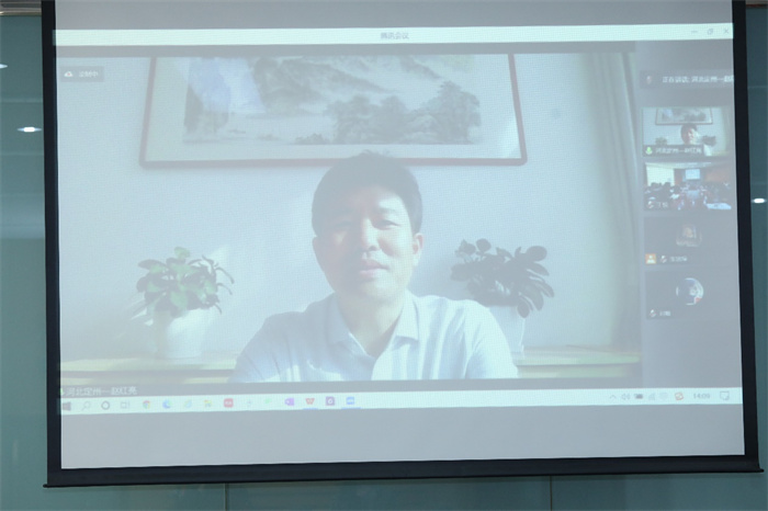 河北省定州市田野课堂教学基地代表、定州市委副书记赵红亮通过视频介绍了定州市针对村干部队伍建设进行“千分制”改革的案例。