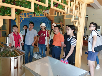 在黄家葡萄酒庄,实习团队考察了葡萄酒酿造工艺、葡萄酒产业链和观光农业服务状况等相关情况,并就三产融合、农村企业与农村社区的互动关系、乡村精英与乡村发展等问题进行了讨论。