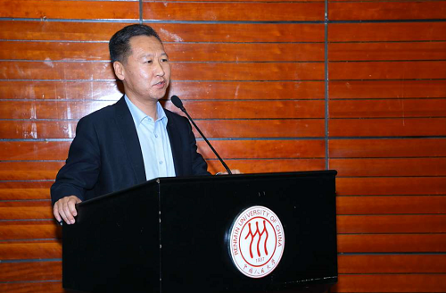 接下来,京东集团党委书记、副总裁龙宝正先生讲话。首先,他对本次“强东杯”知识竞赛表示了充分的肯定,对各个队伍在比赛中的精彩表现、深度交流表示了赞赏。他谈到,这是他第二次参与知识竞赛,今年的活动扩展到了全国的范围,加强了各个高校之间的交流,活动本身具有非常重要的意义。他表示,京东集团及刘强东先生本人将一如既往的支持社会学团队建设,在未来的规划中,将会为更多社会学专业的本科生提供海外游学的机会,帮助同学们开阔视野、增长见识。龙宝正先生的讲话赢得了现场热烈的掌声。