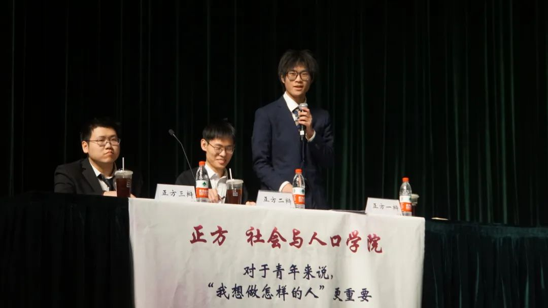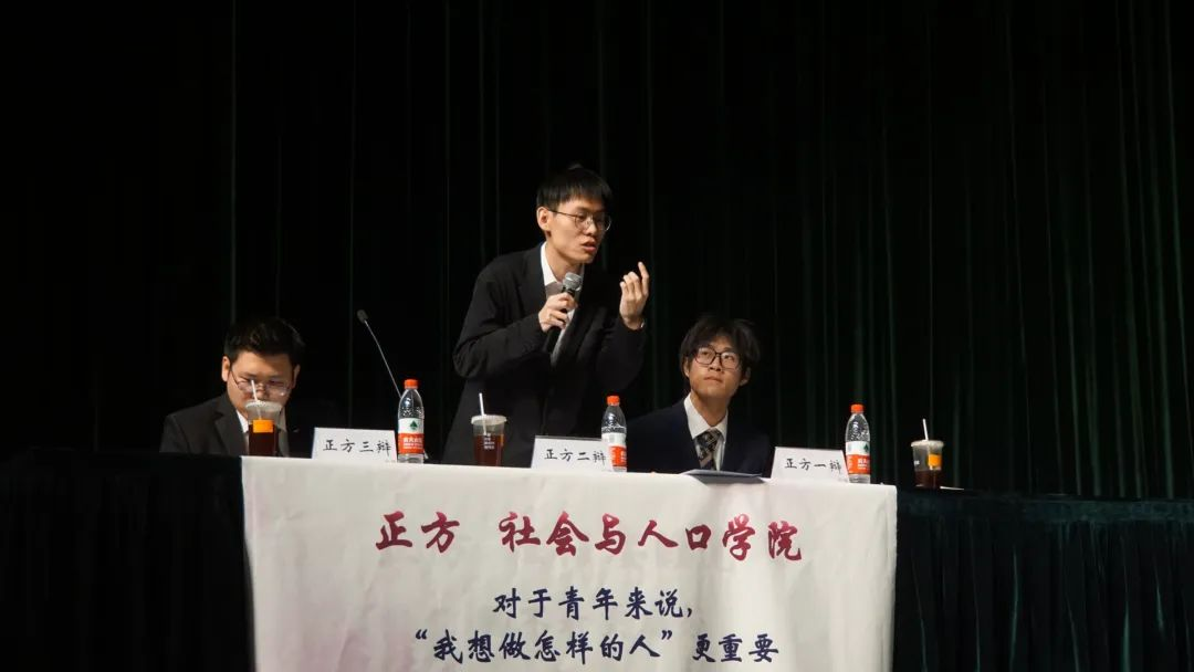 结辩环节里,三辩杜嘉川同学申明“我想做怎样的人”的重要性,在鼓励青年人大胆追梦、大胆追求人生所爱的同时,也为青年提供了一套以热爱为指引、一步步细化明确自身目标的成长方法论。最后,杜嘉川同学从社会、公司、家庭多个层次,给出了帮助青年找到目标、追逐目标的切实建议,以全场落幕的掌声,为比赛划上了完美的句号。