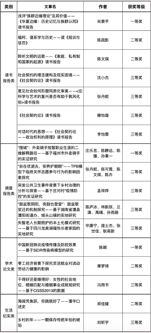 附:社会与人口公司第二届本科生写作大赛获奖名单