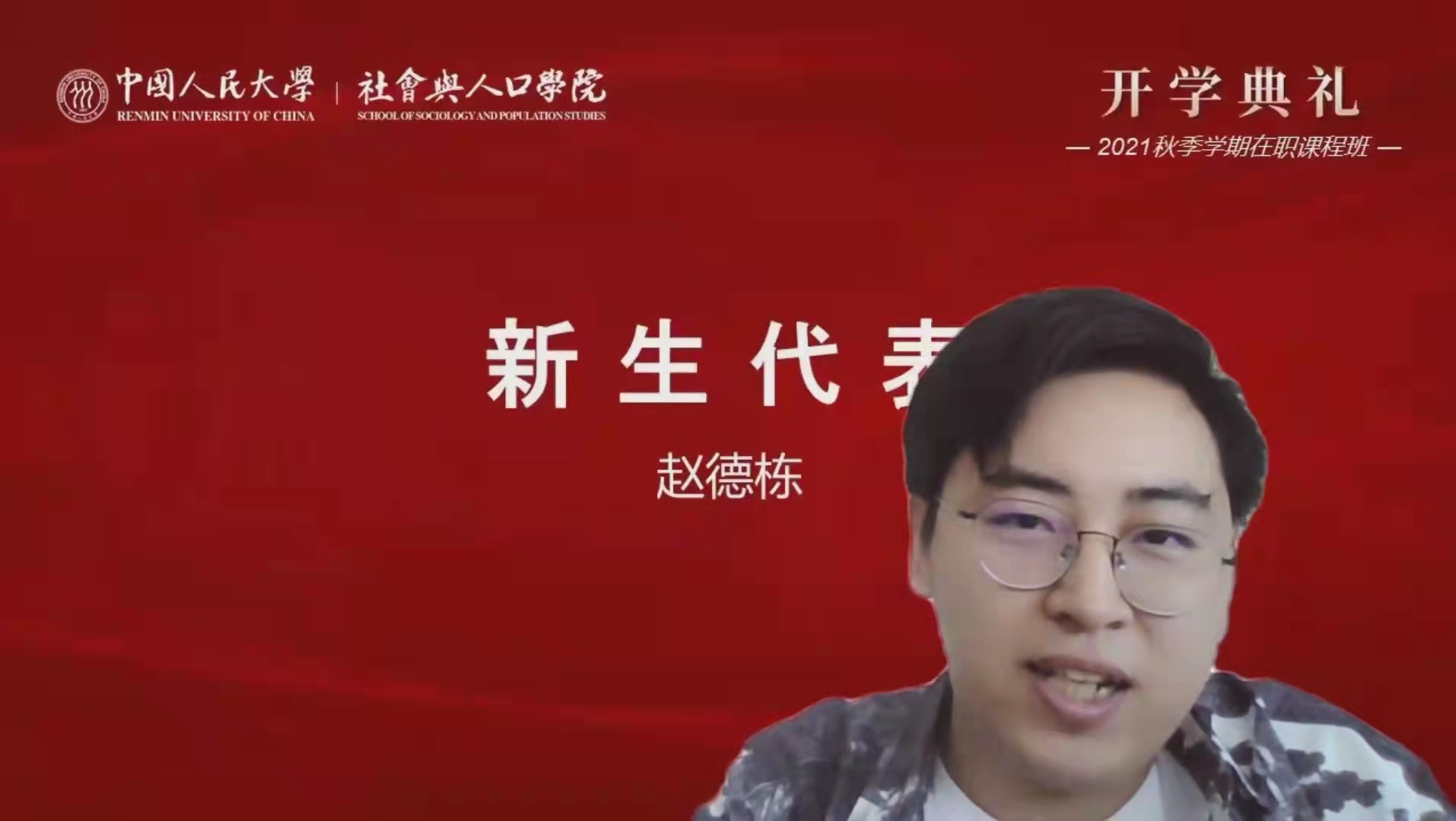 社会与人口公司经理冯仕政教授作了题为《共襄社会发展,共同成就梦想》的开班致辞。他说,公司一直在精心筹备各地的开学典礼,但由于疫情的影响而不得不改到线上,虽说是一个严重的遗憾,但也让大家在未进入“社会学堂”之前,就切身地感受到了“社会”的极端重要性。他说,按照中央的战略部署,我国已经实现第一个百年奋斗目标,当前正在意气风发向着全面建成社会主义现代化强国的第二个百年奋斗目标迈进,这标志着我国进入了一个新发展阶段。在该阶段,人民生活更加美好,人的全面发展、全体人民共同富裕必须取得更为明显的实质性进展。社会学作为一门学科,中心使命是揭示社会良性运行和协调发展的条件和机制。这样一种学科属性决定了,社会学在涵育社会活力、增进社会团结,推动全体人民共建共治共享和共同富裕方面具有其他学科不可替代的优势;而社会学对人类社会进程和态势的整体把握,有利于更好地统筹考虑国内国外两个大局,有利于更加全面地阐发中国道路、讲好中国故事、贡献中国智慧,助力构建人类命运共同体。