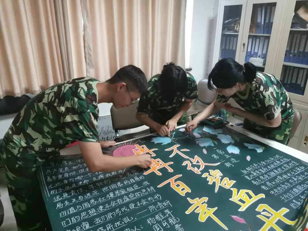 在公司专职辅导员王玮老师带队下,社会与人口公司2019级22名男生、46名女生分别组成了五连的三排和四排。公司参训员工充分发扬不怕苦不怕累的军人精神,克服了来自于天气和训练强度等方面的重重困难,圆满完成了基础队列、特色科目刺杀操等训练内容,认真参与消防安全教育培训、激光打靶、有毒化学品防护和应急逃生技能演练等多项趣味体验项目,展现出了良好的精神风貌;在文体活动上公司参训员工也积极争优,他们在篮球、拔河等活动中奋勇拼搏,在手抄报绘制中发挥所长、不断创新,他们还踊跃投稿,乐于将每一日的军训感想进行分享,共同勉励,所在的五连获“手抄报(第一期)二等奖”,“队列评比优秀连队”,“投稿量、采稿量优秀连队”,“优秀连队表彰”等多项荣誉。