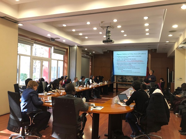 段成荣教授长期从事人口迁移流动留守人口尤其是留守儿童等方面的研究,在相关领域有深厚的研究积淀,为我国学术界和政府了解该群体的基本生存发展状况及其变动趋势做出了卓越贡献。段成荣教授曾于2013年第一次受邀前往联合国驻华机构讲座,此次是段成荣教授第二次受邀前往,促进了联合国机构官员对中国流动人口和受人口流动影响的儿童的状况和发展趋势的准确了解和把握。吕利丹博士在过去十年里对流动人口特别是流动儿童和留守儿童开展了大量高水平研究,先后两次被联合国儿童基金会聘为国际咨询专家,开展有关流动儿童、留守儿童和少数民族儿童的研究。